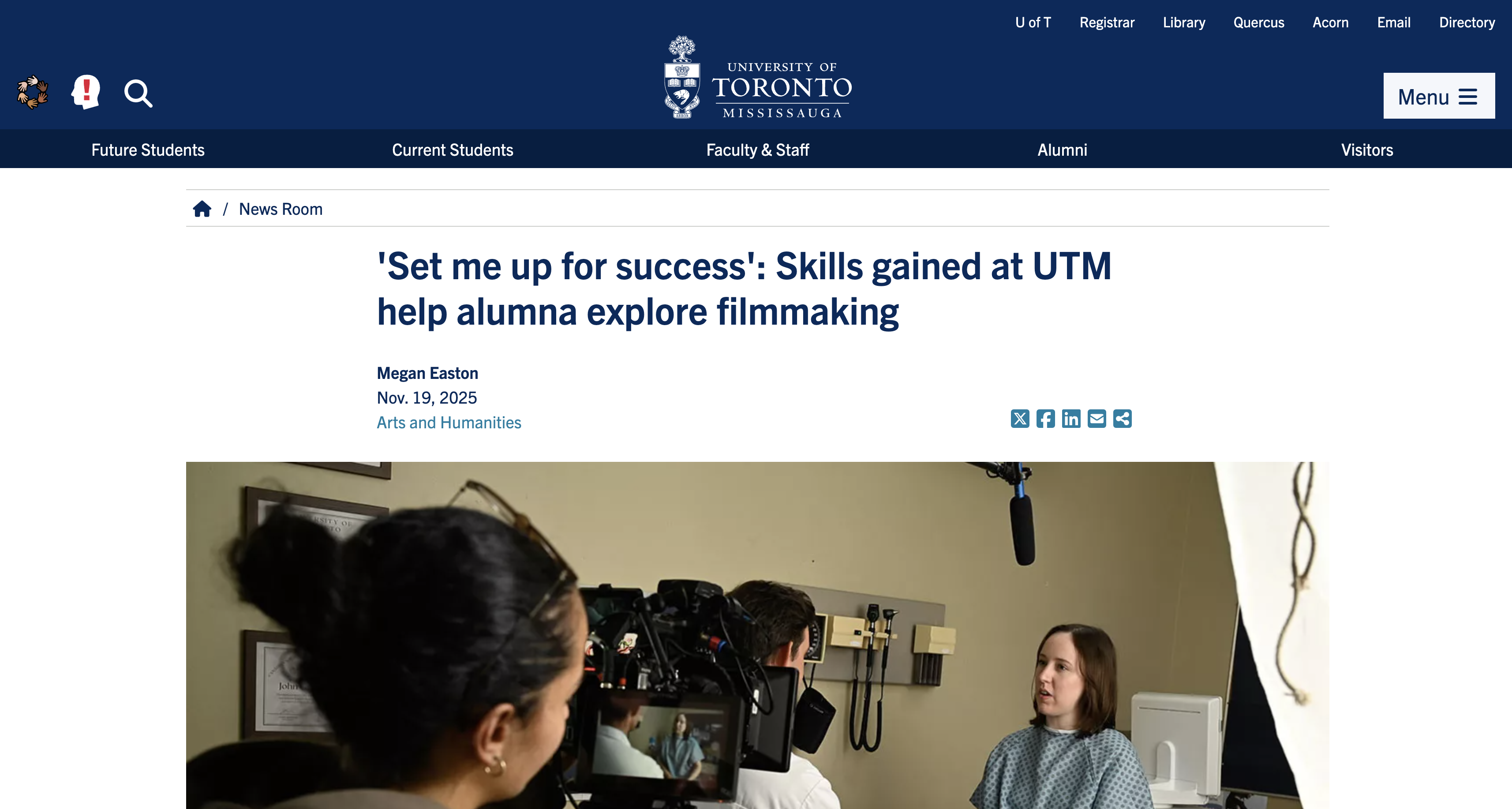 Writer/Producer/Actor Sarah Hime, speaks to her alma mater University of Toronto about the making of Alice Is Fine, her health journey, and the connections she made in the Theatre and Drama Studies Program at UTM.